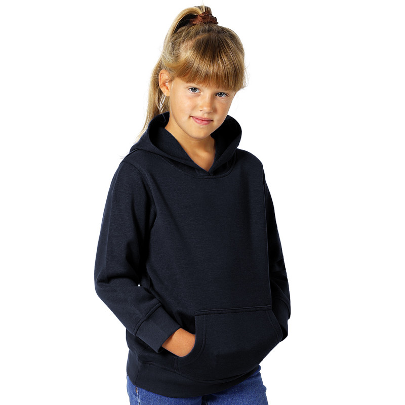 Kids' sweatshirt, 280 g/m2, elasticated rib cuffs, hoodie, collar and bottom, reinforcement tape at neckline, double stitching at collar, shoulders, sleeves, and hem