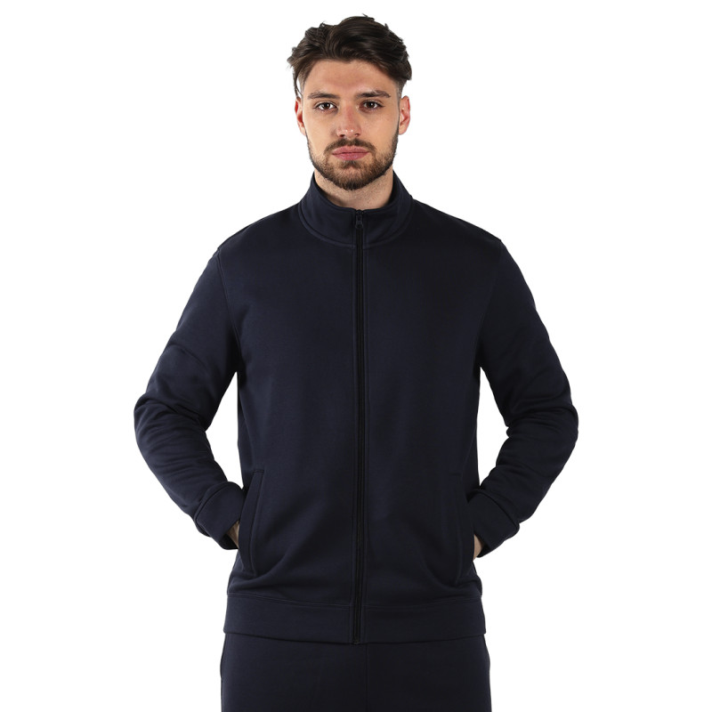 Zipped sweatshirt, tone-to-tone hood cords, elasticated rib cuffs and bottom, double stitching at shoulders, sleeves and hem