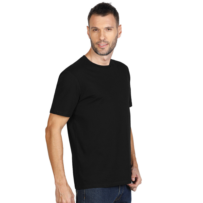 T-shirt tubular, double stitching at collar, sleeves and bottom, reinforcement tape at neckline, topstitch at shoulder line