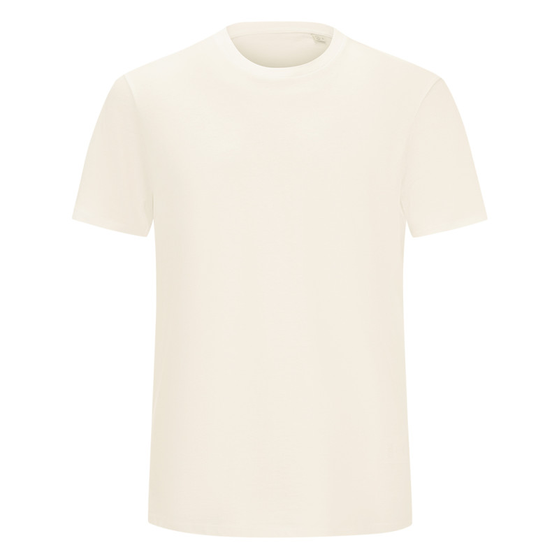T-shirt tubular, double stitching at collar, sleeves and bottom, reinforcement tape at neckline, topstitch at shoulder line