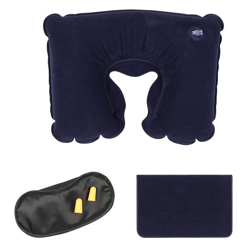 Travel set 3 in 1 contains: travel pillow, sleeping mask and earplugs