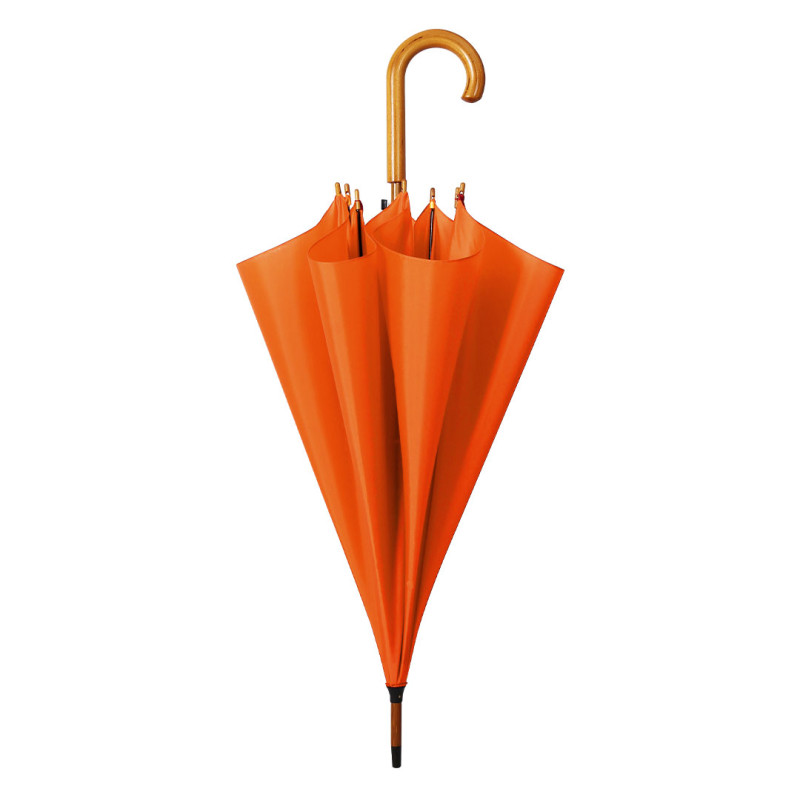 Umbrella with 8 panels, curved wooden handle, wooden shaft (Ø 14 mm), top and tips