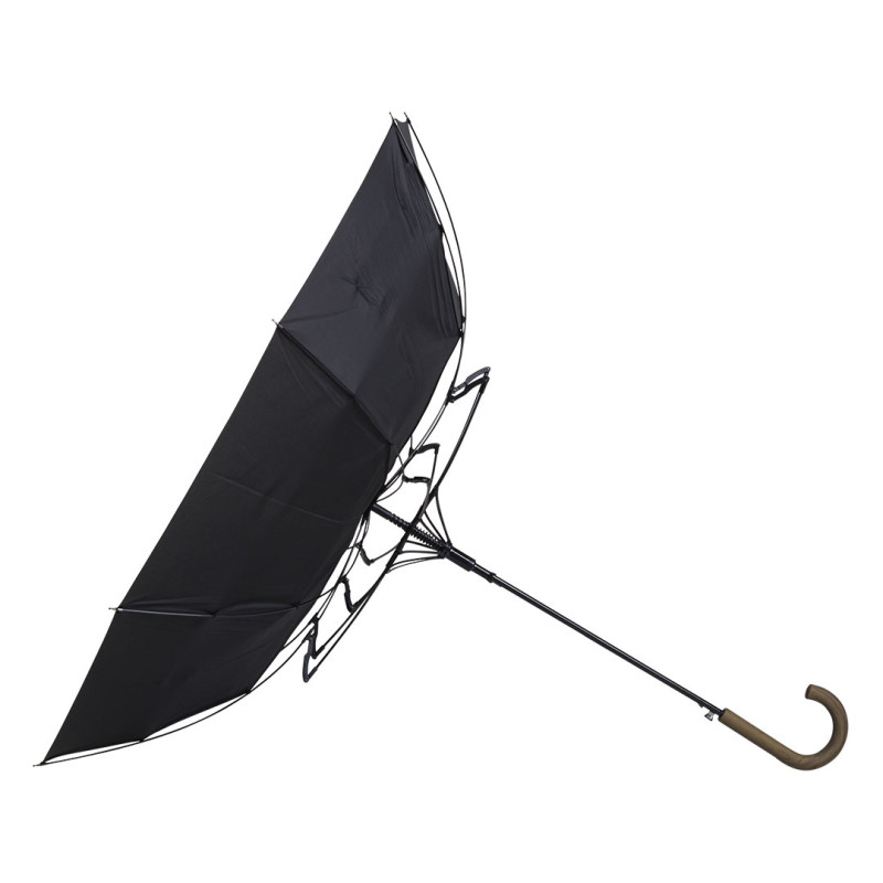 Umbrella with 8 panels, rubberized handle with wooden effect, fiberglass frame, black metal shaft (Ø 10 mm), top and tips