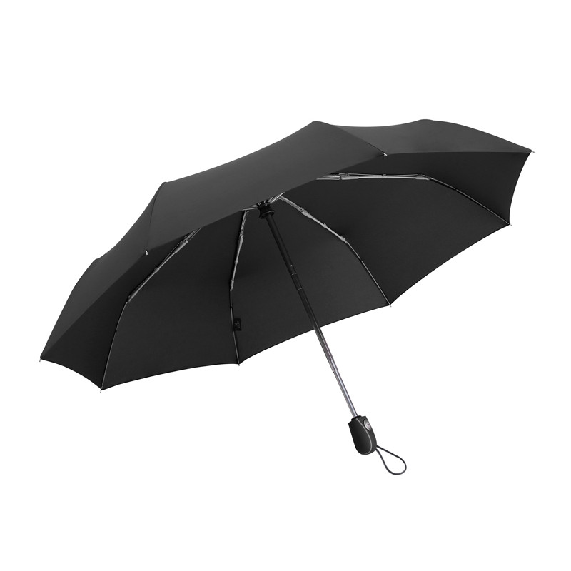 Umbrella with 8 panels, aluminum and fiberglass frame, chromed metal shaft (Ø 11 mm), metal tips, rubberized handle in tone with fabric, self-fabric pouch with nonwoven lining