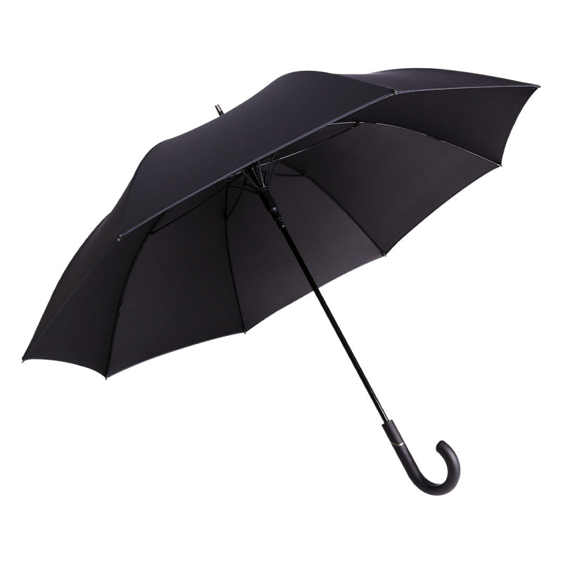 Umbrella with 8 panels, silver piping, rubberized handle, fiberglass frame, black metal shaft (Ø 12 mm), top and tips