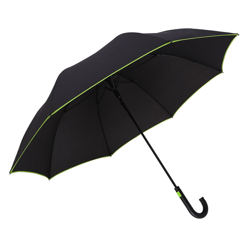 Umbrella with 8 panels, matching color button and piping, rubberized handle, fiberglass frame, plastic top, black metal shaft (Ø 10 mm) and tips