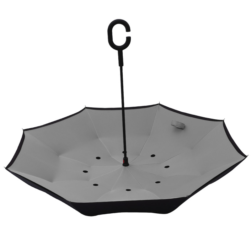 Umbrella with 8 panels, two faces, rubberized "C" shape handle, steel shaft laminated with plastic (Ø 12 mm), plastic top and metal tips