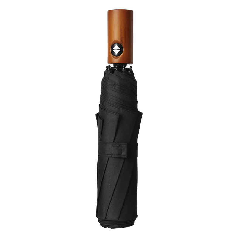Umbrella with 8 panels, metal and fiberglass frame, black metal shaft (Ø 11 mm), plastic tips, wooden handle, self-fabric pouch, windproof