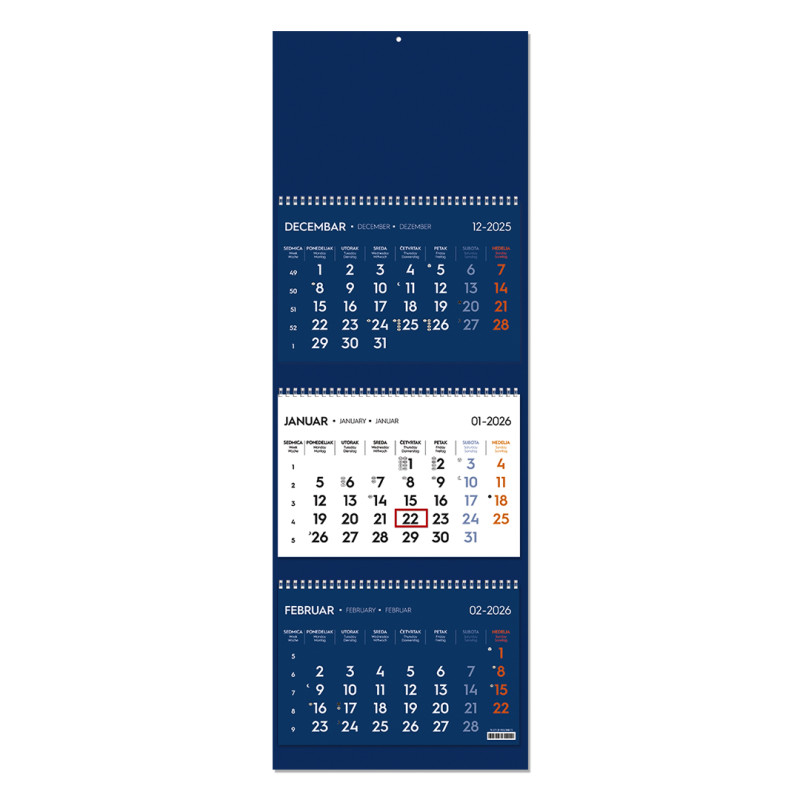 Wall calendar, 3 parts, 3 x 12 pages, format 23 x 51 cm