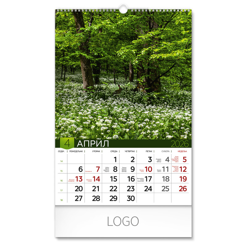 PRIRODA TRODELNA I, wall calendar, 3 parts, 3 x 12 pages, A3 format