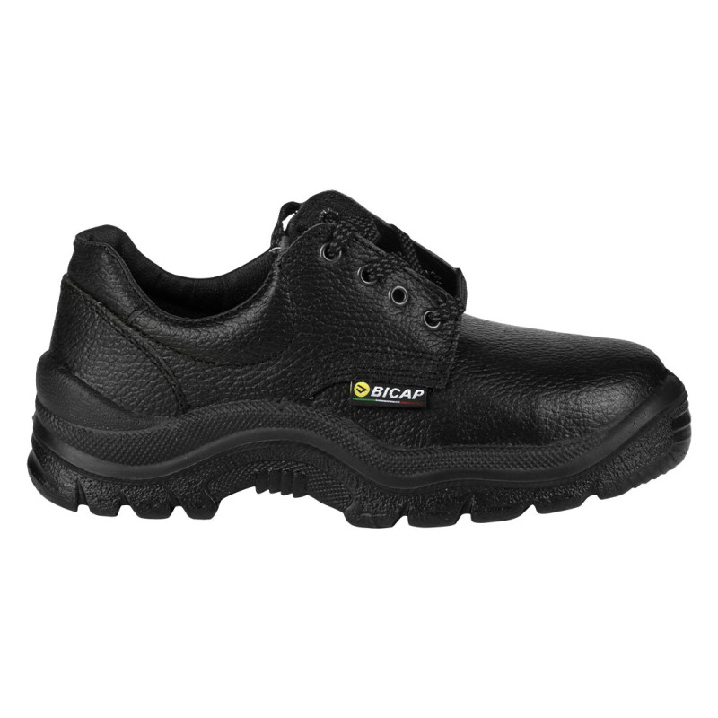 Low-cut work shoe, O1 Upper: printed leather water resistant + synthetic Lining: breathable with high steaming permeability Midsole: stainless steel Sole: double - density polyurethane Fussbett: TOP BASIC