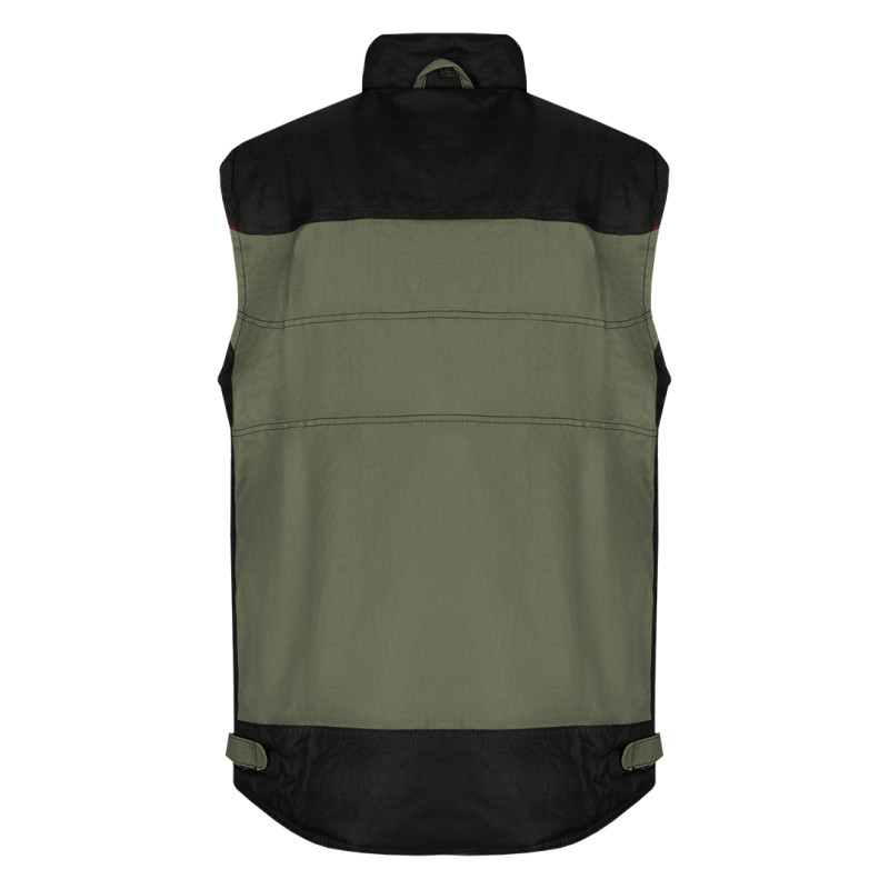 Bodywarmer, 300 g/m2, canvas, high collar, fully zippered, stressed points reinforced with polyester 900D, four pockets, two o chest with ID pocket, two front pockets, one pocket inside, waist with velcro tape adjustments, zipper on the inside back for easier printing access