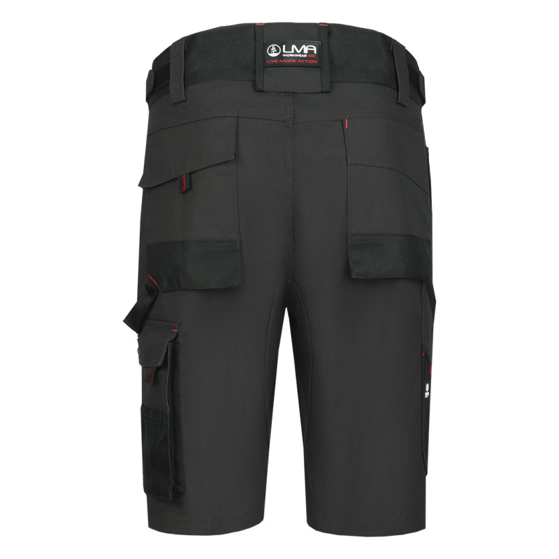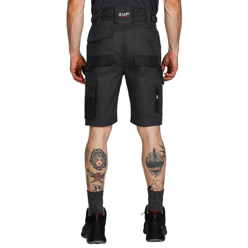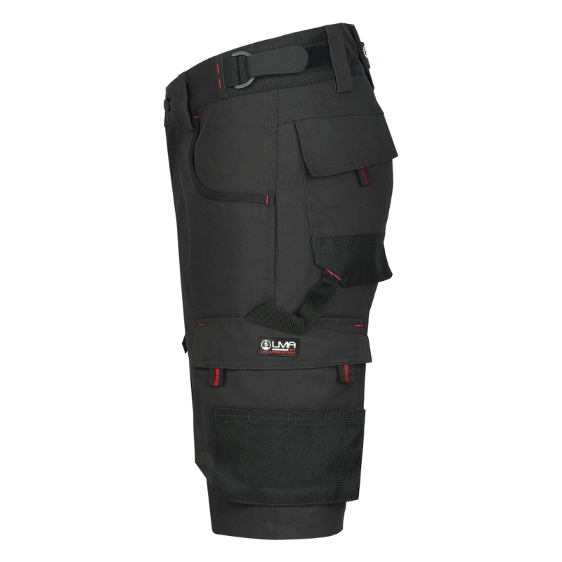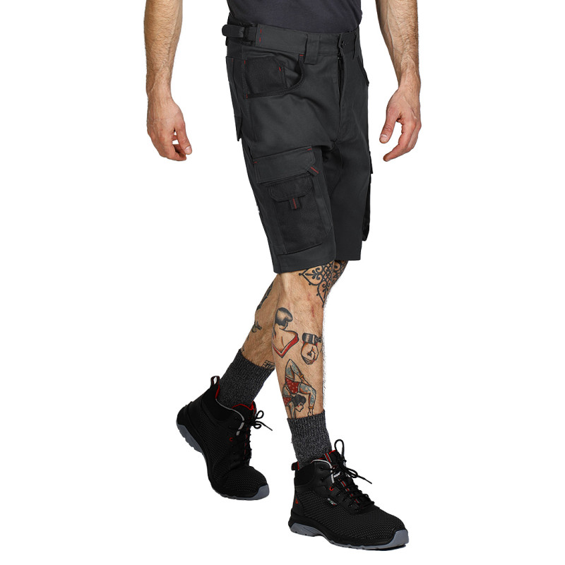 Bermuda, 300 gr/m2, canvas, comfortable fit and high resistance, stressed points reinforced with polyester 900D, two front pockets, two back pockets and two side pockets with additional functional compartments for tools, hammer loop, plastic loop for keys, elastic band in waist for comfort